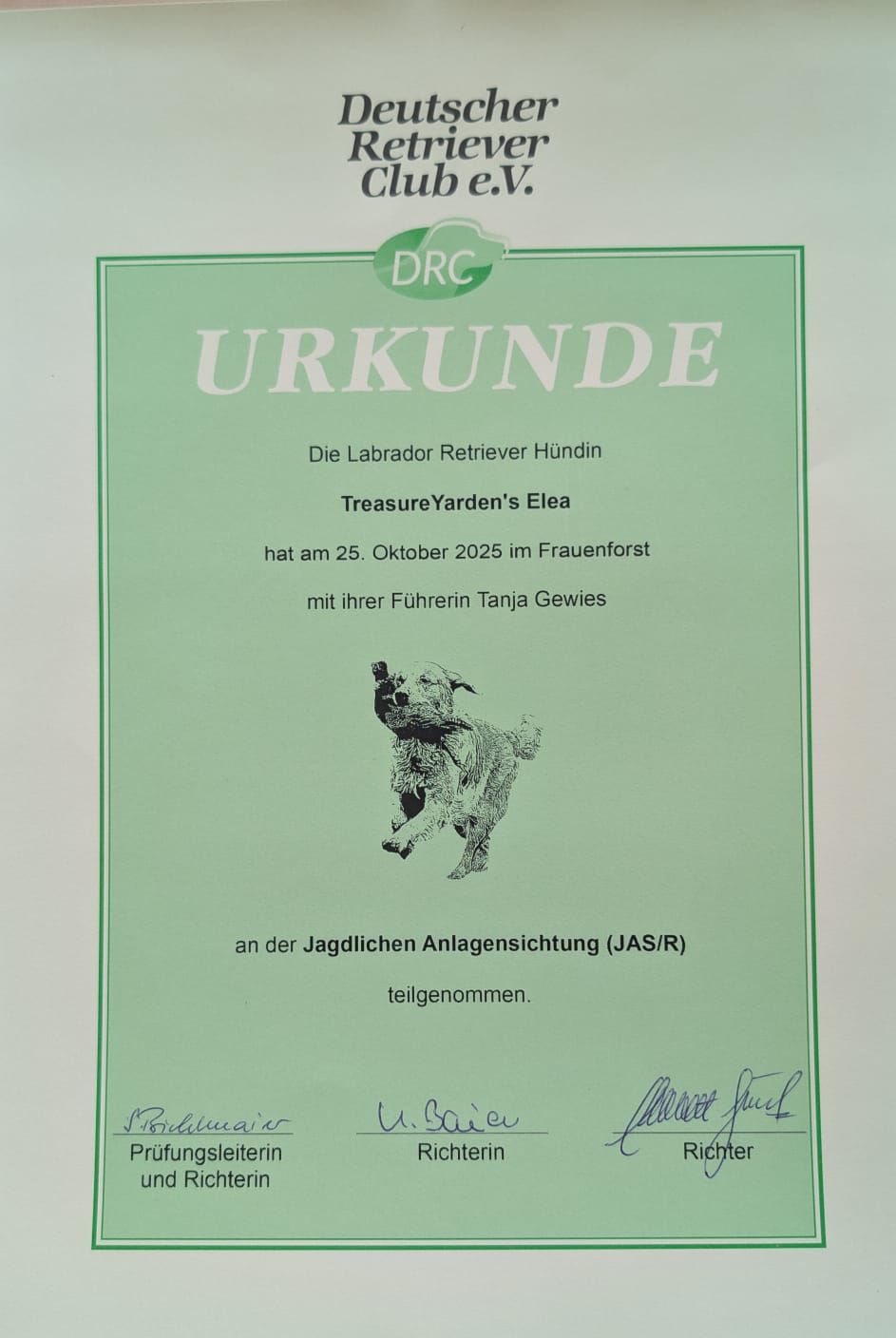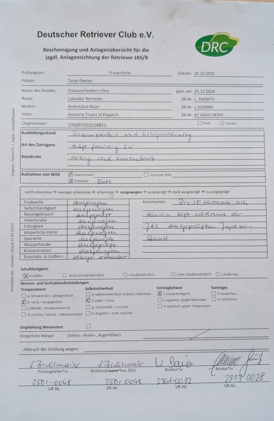„The 10-month-old bitch shows a pronounced hunting instinct during the JAS.“